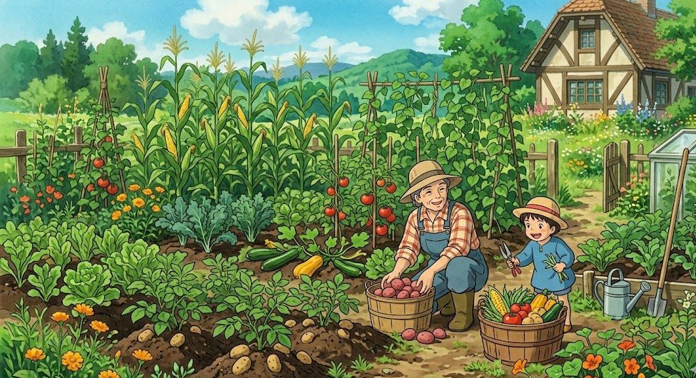 Beginner’s Tip: Avoid the “Variety Trap.” It is tempting to grow 20 types of exotic peppers, but a self-sufficient farmer focuses on mastering the top 5 high-calorie crops first. Once your staples are secure, then you can add the “flavor” crops.